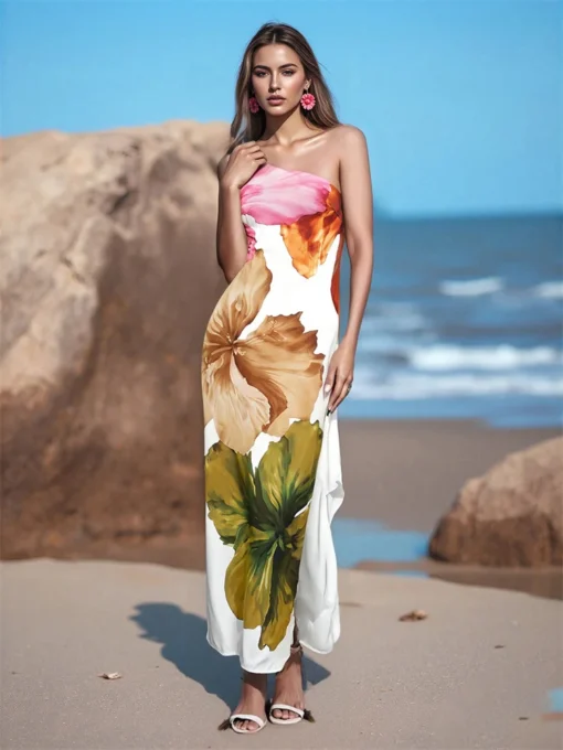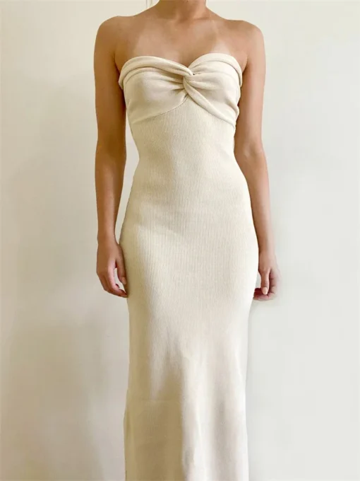 Women Evening Party Long Dress Backless Cut Out Strapless Straight Dress Summer Sexy Elegant Dresses