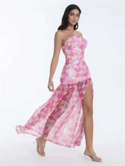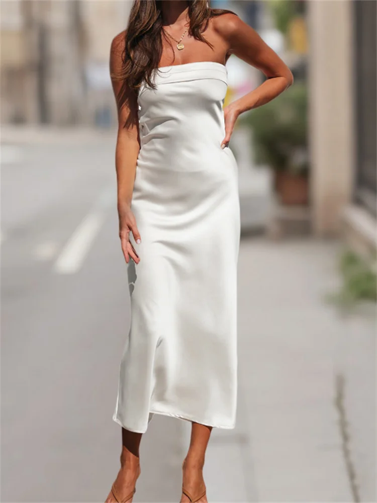 Summer Women Tube Top Dress Solid Color Strapless Sleeveless Backless Midi Dress Y2K Aesthetic Cocktail Party Sexy Dresses